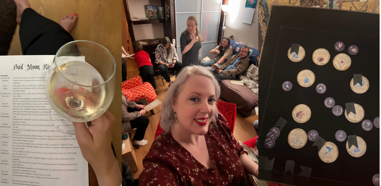 Игры проходят у меня дома! Окунитесь в атмосферу Америки на один вечер — в окружении английского языка и в уютном пространстве, созданном специально для Blood on the Clocktower. Точный адрес будет отправлен в день мероприятия.
